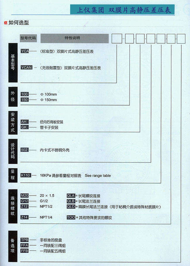 ? ? ? ?表殼充油:YCAN充填硅油;YCA為干式