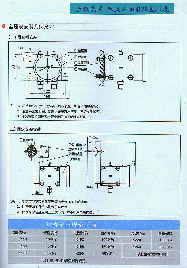 ? ? ? ?儀表量程:16KPa、25KPa、40KPa……600kPa (見規(guī)格代碼表)