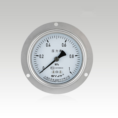 Y-100BFZ表示表盤直徑為100mm的軸向型帶邊或不帶邊耐腐蝕抗振不銹鋼壓力表